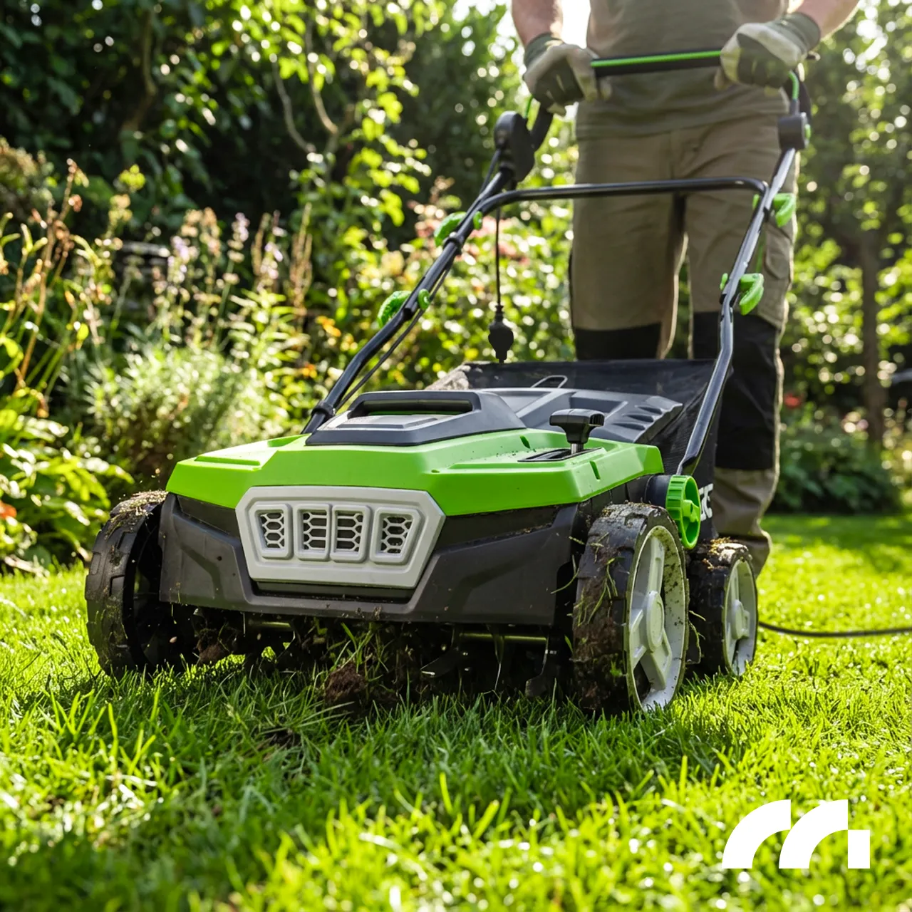 Dzięki temu możesz dobrać ustawienie idealnie do potrzeb: lżejsza praca przy regularnej pielęgnacji lub mocniejsze ustawienia, gdy trawnik jest zaniedbany i wymaga regeneracji.