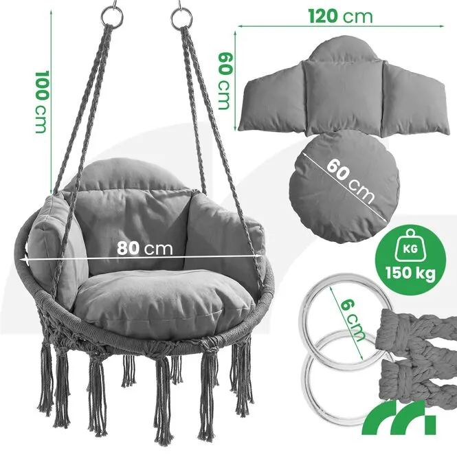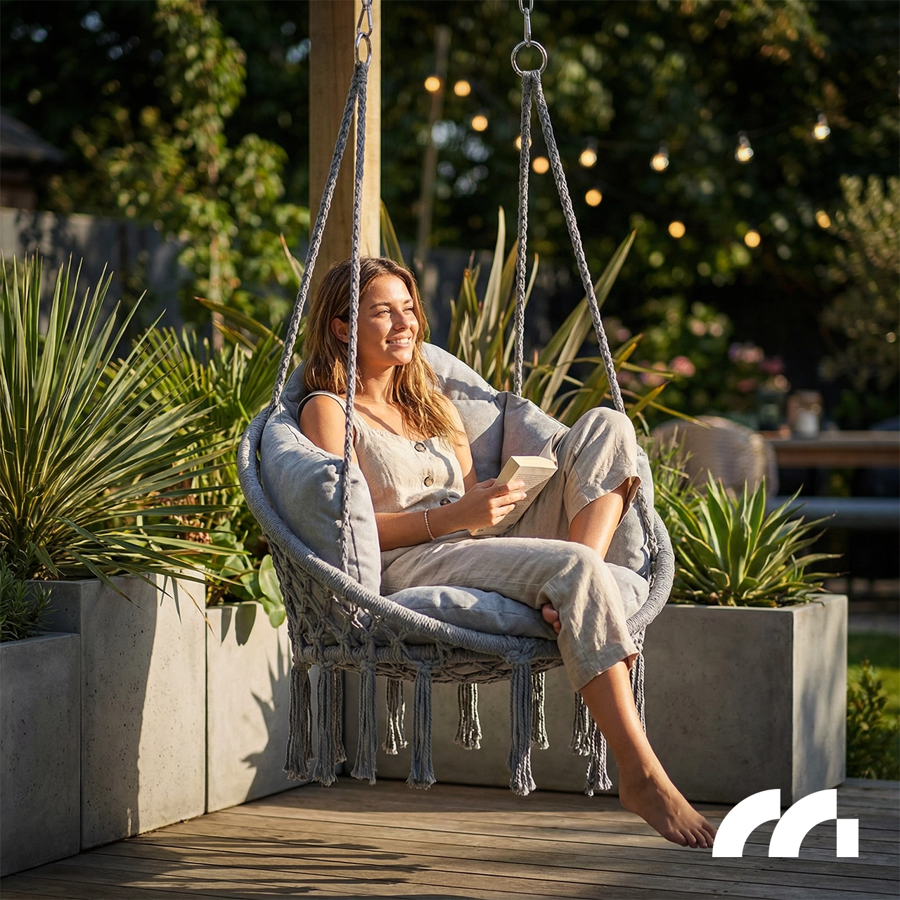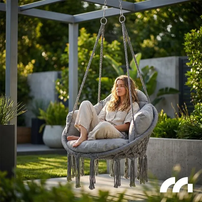 Fotel wiszący stwarza możliwość stworzenia własnego azylu pełnego piękna, wygody i inspiracji, zapraszając do tworzenia niezapomnianych momentów w otoczeniu przyrody i estetycznego designu.