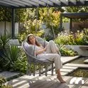 - W ogrodzie stanowi urokliwe miejsce do wypoczynku w otoczeniu zieleni i kwiatów