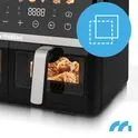 Podwójna komora 2x5L łączy dużą pojemność z wygodą. W jednym czasie przyrządzisz dwa różne dania - np. frytki w jednym koszu i kurczaka w drugim - z niezależnymi ustawieniami dla każdej komory.