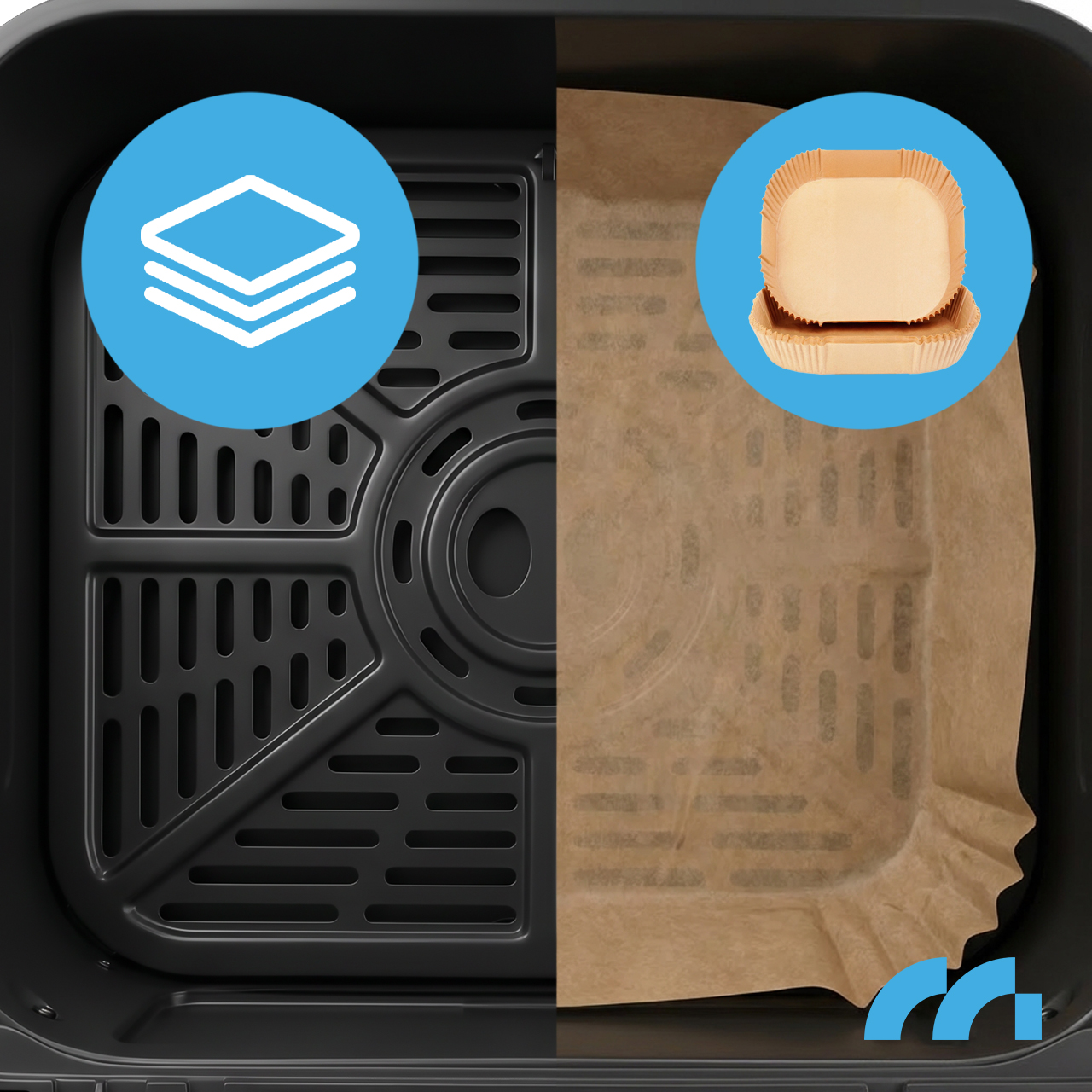 W zestawie otrzymujesz 50 jednorazowych tacek do pieczenia, które dodatkowo ułatwiają utrzymanie czystości po gotowaniu.