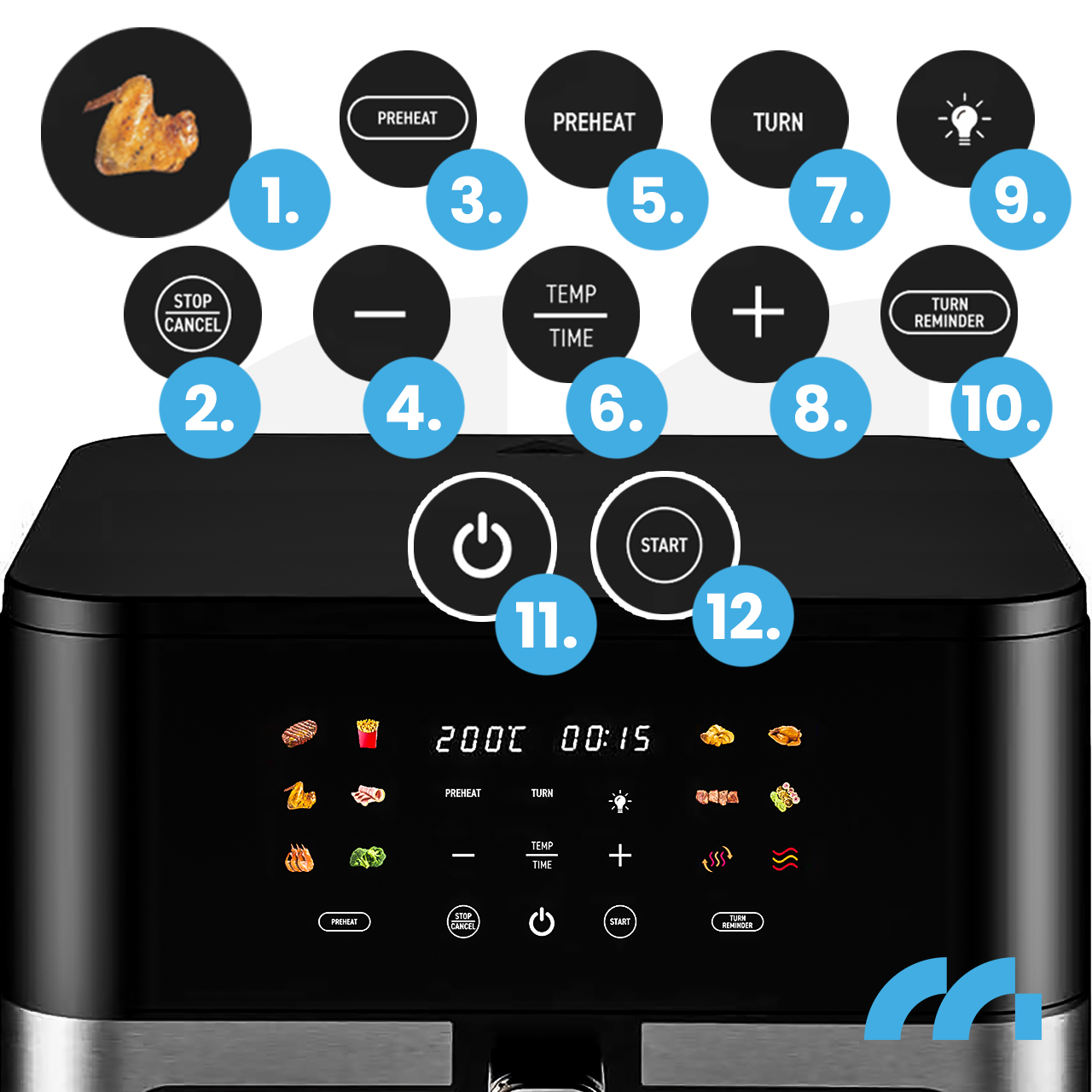 Automatyczne programy gotowania w frytkownicy MalTec AirFryer2000W-10L pozwalają na przygotowanie szerokiej gamy potraw: