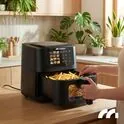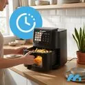 Dodatkowo frytkownica posiada tryb ręczny, który umożliwia samodzielne ustawienie temperatury i czasu gotowania, dostosowując je do indywidualnych potrzeb.