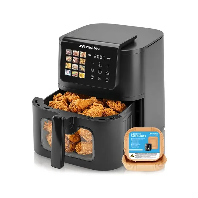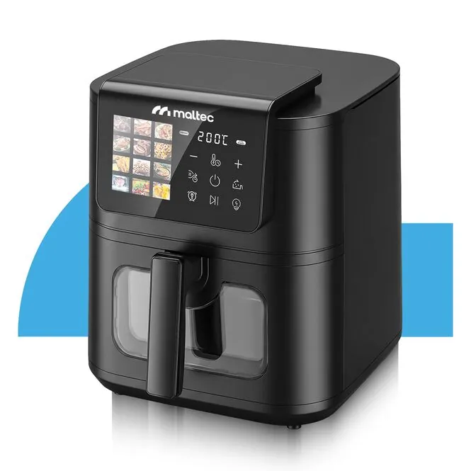 Frytkownica beztłuszczowa MalTec AirFryer2000W-8LB to zdrowy sposób na przygotowanie lekkich i smacznych potraw. Dzięki technologii szybkiej cyrkulacji gorącego powietrza urządzenie umożliwia smażenie frytek, kurczaka, ryb, warzyw, a nawet pieczenie ciast bez konieczności użycia oleju.