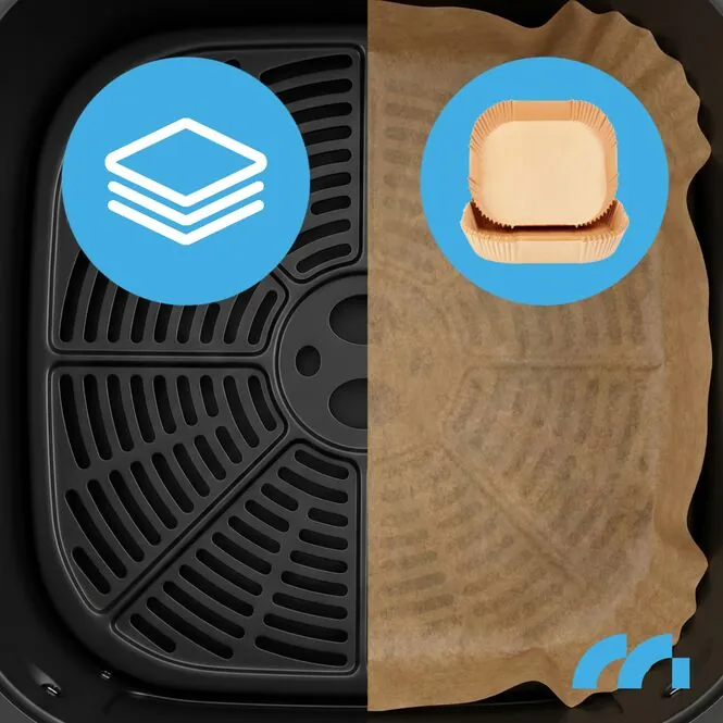 W zestawie otrzymujesz 50 jednorazowych tacek do pieczenia, które dodatkowo ułatwiają utrzymanie czystości po gotowaniu.