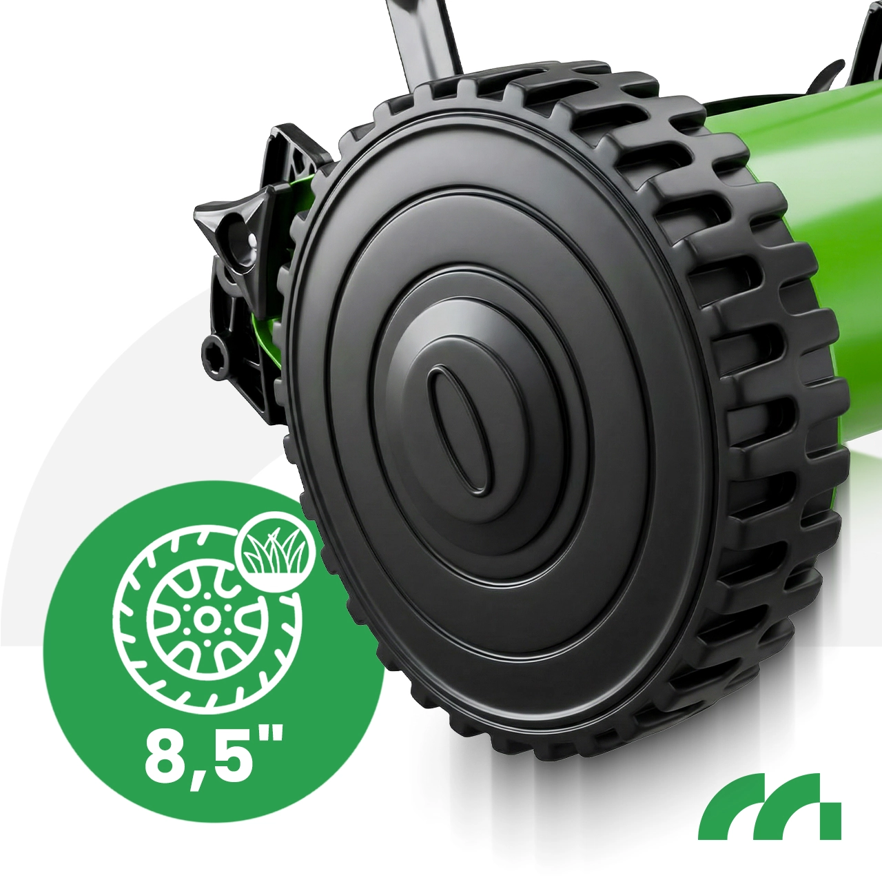 Dodatkowo koła 217 mm pomagają płynnie manewrować, dzięki czemu koszenie jest mniej męczące i bardziej komfortowe nawet podczas częstego użytkowania.