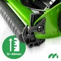 Dzięki regulacji wysokości koszenia w zakresie 12-45 mm możesz łatwo dostosować efekt cięcia do aktualnego stanu trawy i własnych preferencji.