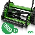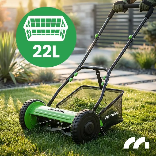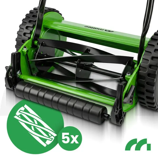 5 ostrzy ze stali wysokowęglowej 65Mn + bębnowy system cięcia sprawiają, że kosiarka równo ścina trawę bez szarpania. Dzięki temu murawa wygląda estetycznie, świeżo i schludnie, a efekt zadbanego trawnika widać bardzo szybko.
