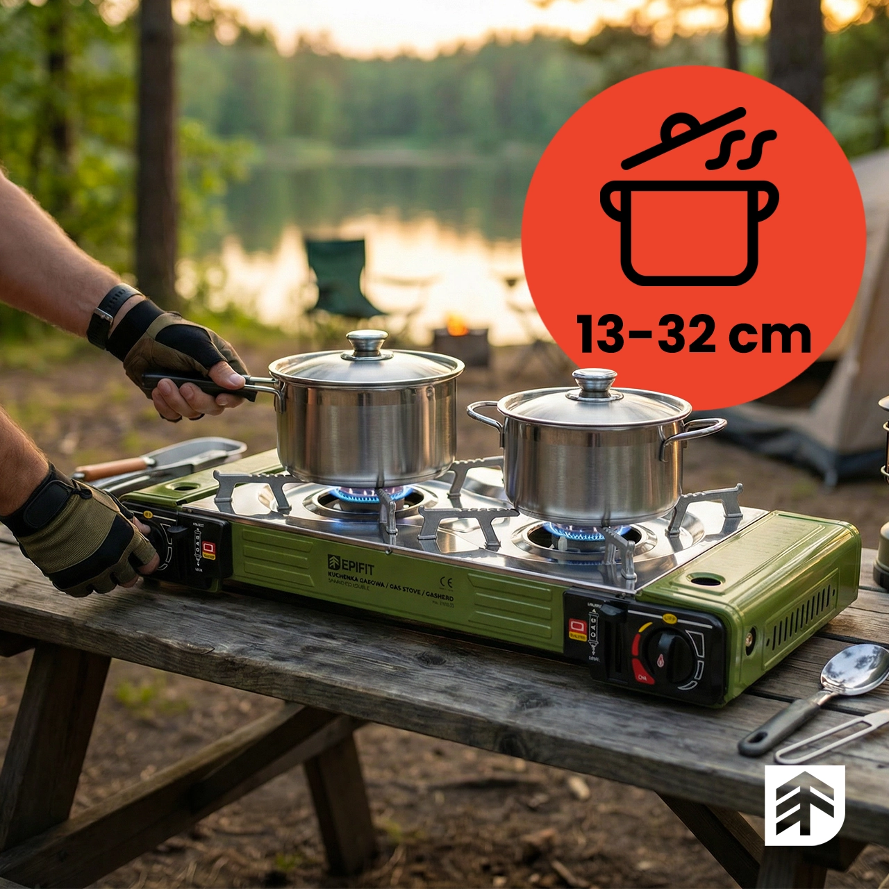 Największą przewagą tego modelu są oczywiście dwa niezależne palniki, które dają Ci znacznie większą swobodę niż klasyczna kuchenka jednopalnikowa. Możesz jednocześnie gotować wodę i podgrzewać danie, przygotować dwa posiłki naraz albo rozdzielić gotowanie dla kilku osób bez niepotrzebnego czekania. To szczególnie ważne na campingu, działce czy w kamperze, gdzie liczy się wygoda, tempo działania i praktyczne rozwiązania, które naprawdę ułatwiają życie.