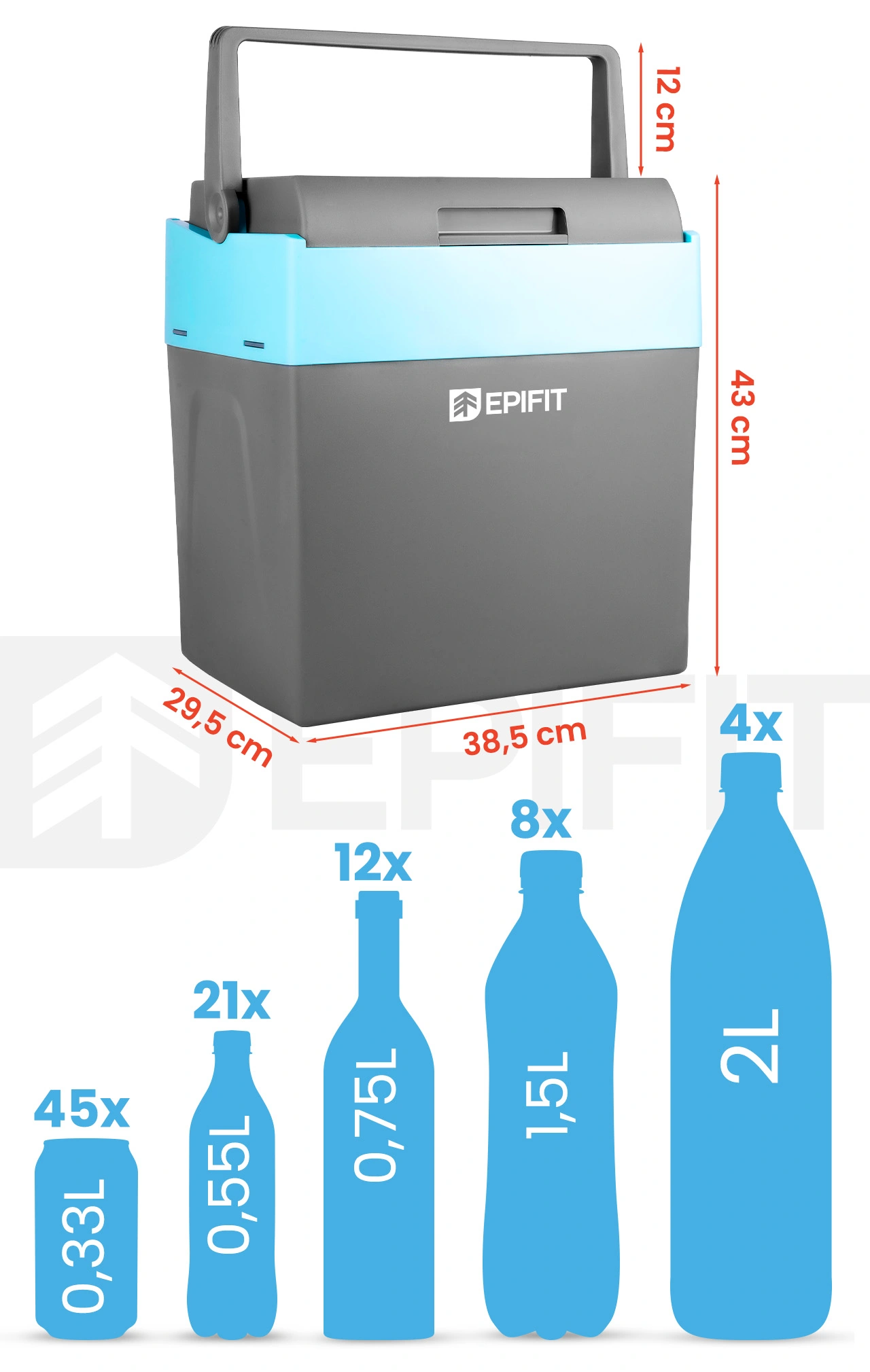 - Розміри холодильника : 43 x 38,5 x 29,5 см