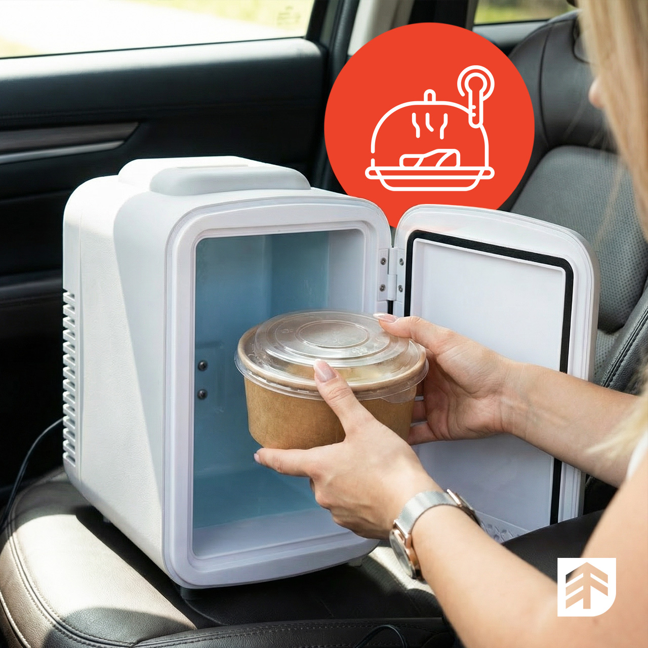 Mini lodówkę podłączasz bezpośrednio do gniazda zapalniczki 12V, a ona utrzymuje temperaturę napojów, przekąsek lub owoców.