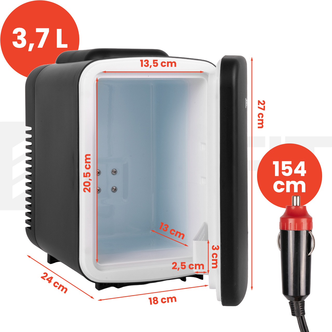 • Wymiary lodówki: 24 x 18 x 27 cm