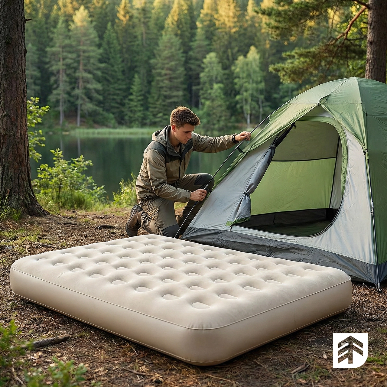 MATERAC DMUCHANY DWUOSOBOWY Z POMPKĄ ELEKTRYCZNĄ USB-C KEMPINGOWY 300KG