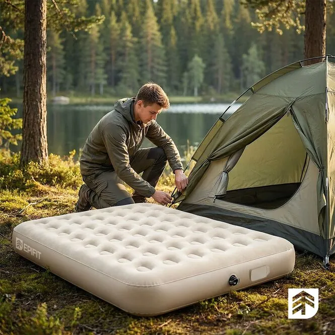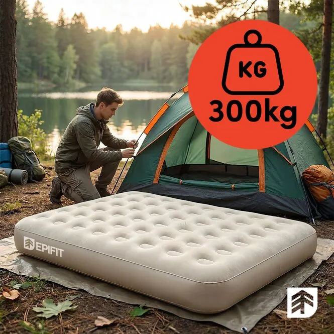 - Materac 2-osobowy – wygodna powierzchnia do odpoczynku dla dwóch osób, odpowiednia do użytku w domu i poza domem.