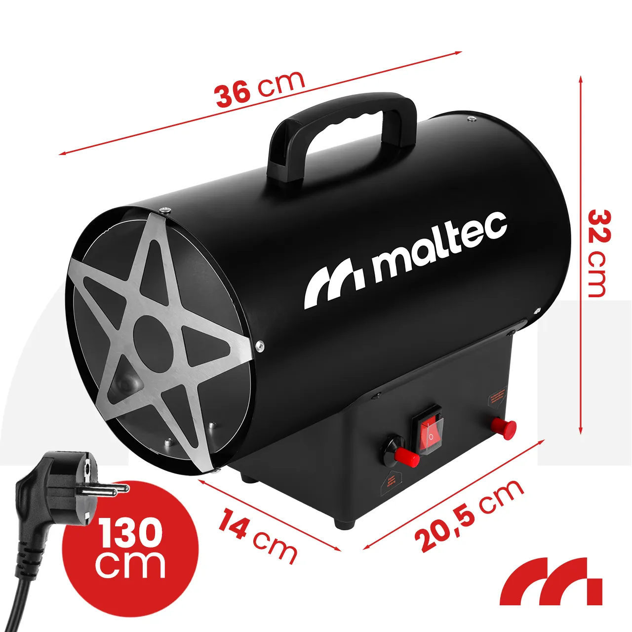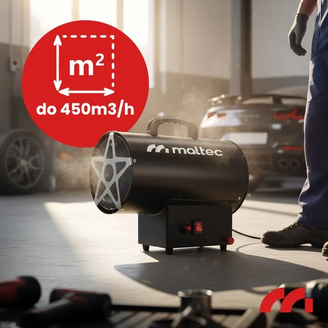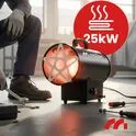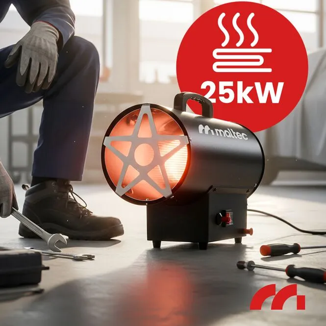 Пристрій, що працює на пропан-бутані, виробляє чисте та тепле повітря, що дозволяє обігрівати дуже великі поверхні.