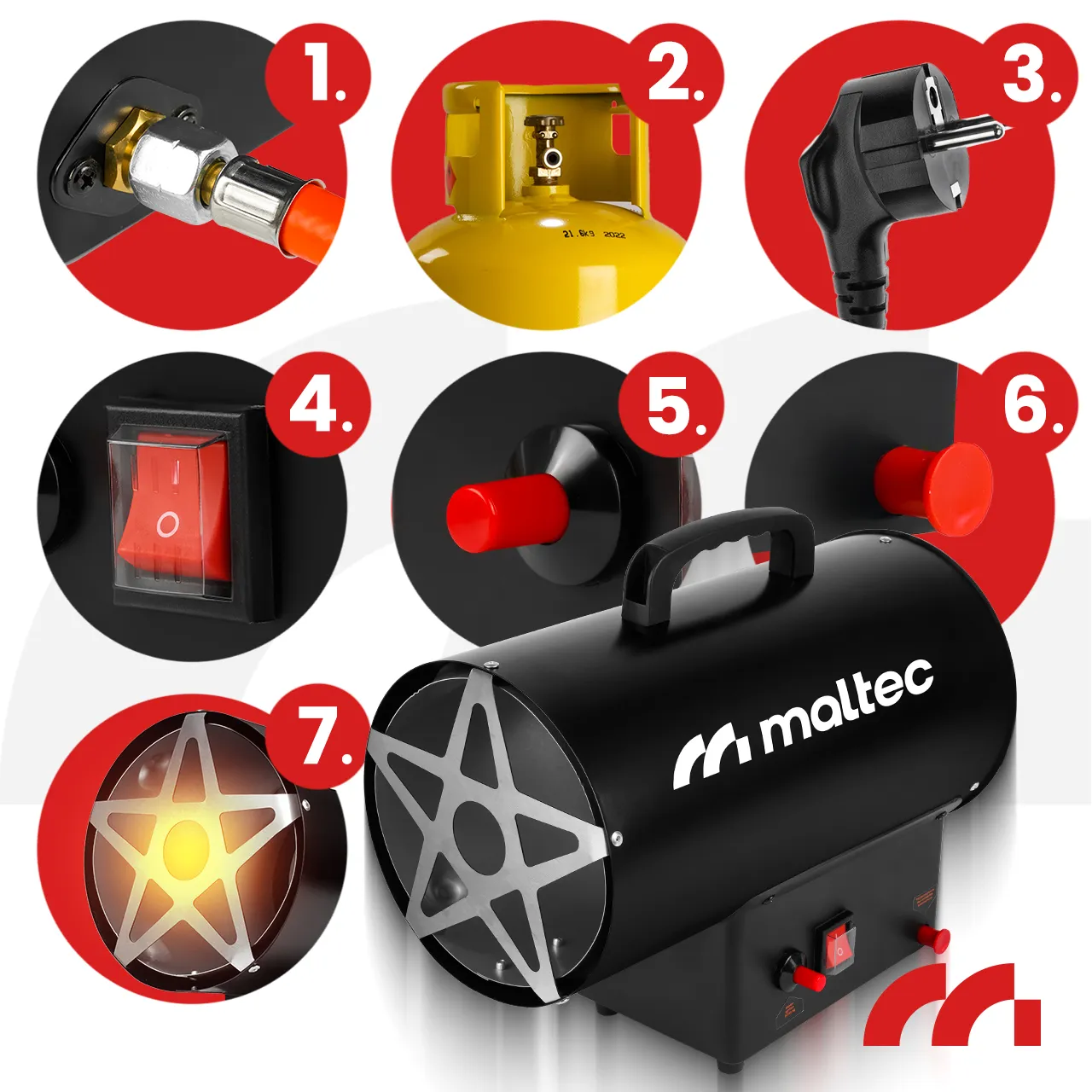Газові обігрівачі цього типу оснащені численними функціями, які значно підвищують безпеку. Вони мають систему, що захищає двигун від перегріву. Крім того, їх компактний дизайн та ручка, розташована зверху, значно полегшують їх перенесення.
