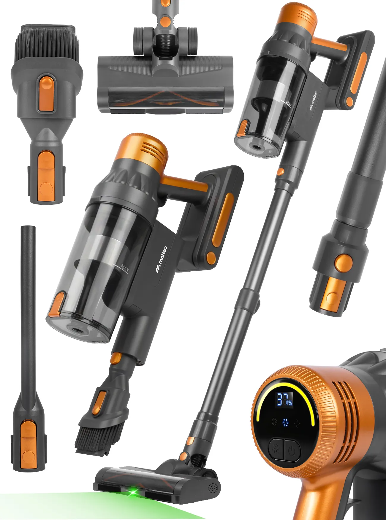 • ODKURZACZ RĘCZNY - po odpięciu rury i szczotki uzyskujesz lekkie, poręczne urządzenie, które świetnie sprawdza się przy odkurzaniu mebli, tapicerki, schodów, półek czy przestrzeni między sprzętami. Ergonomiczny uchwyt zapewnia wysoki komfort pracy.