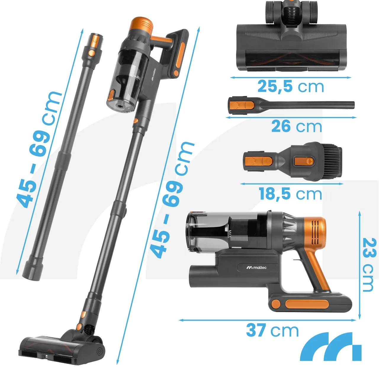 • Wymiary odkurzacza: 69 x 23 x 11 cm
