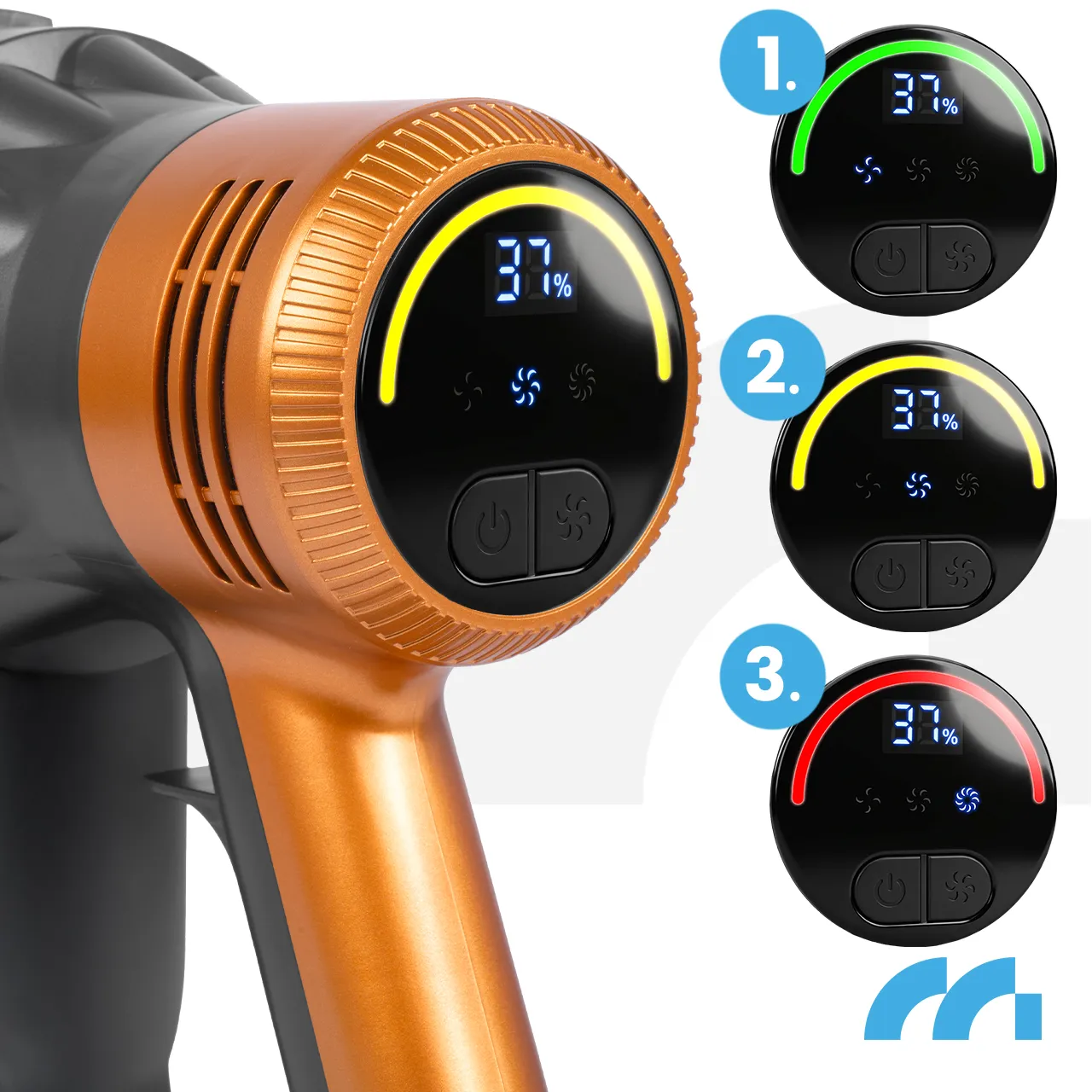 W zależności od wybranego trybu akumulator Li-Ion 2500mAh zapewnia do 45 minut pracy, a tryby mocy są prezentowane na czytelnym wyświetlaczu.