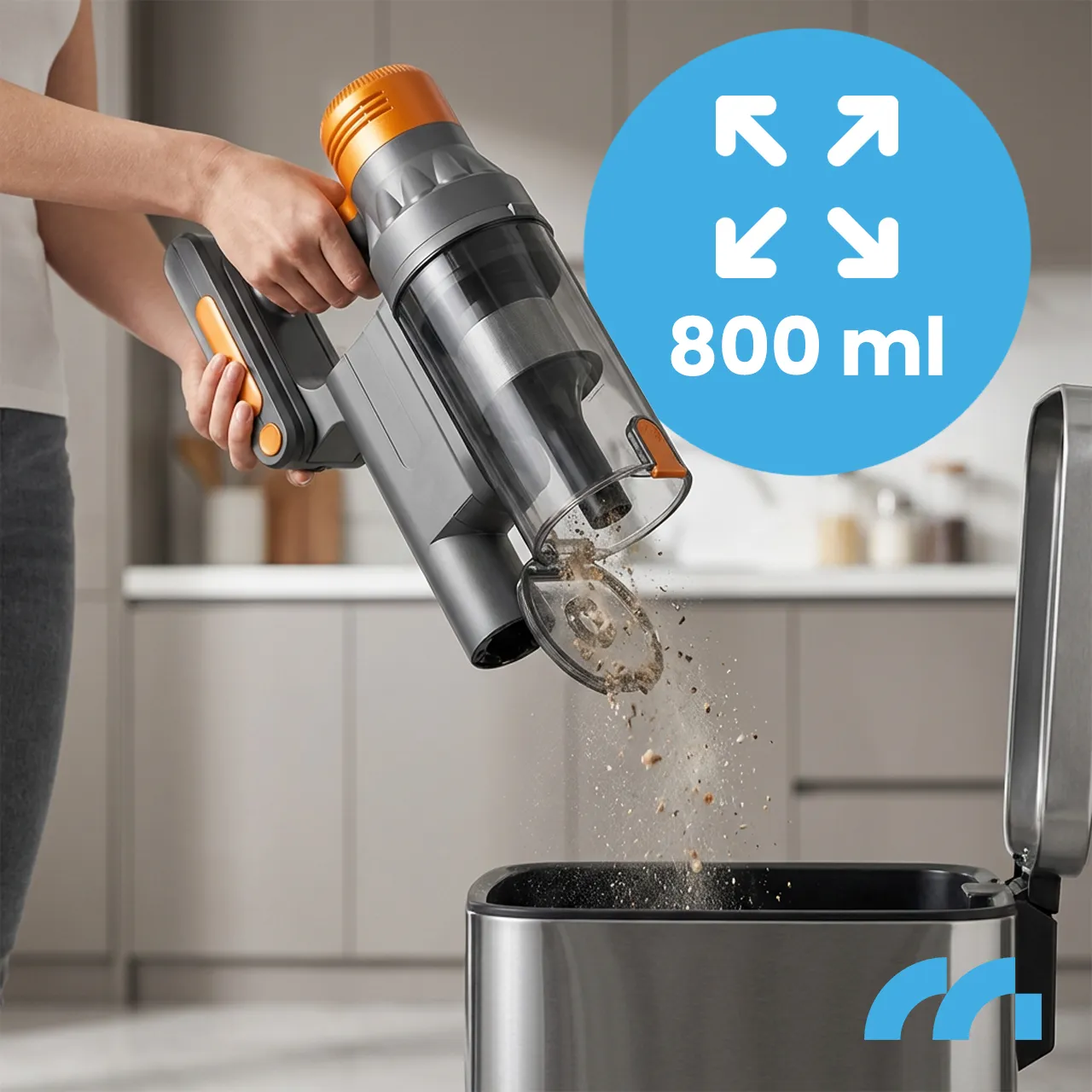 Model PRO4000 posiada zbiornik na kurz o pojemności 800 ml, który można opróżnić jednym kliknięciem - bez kontaktu z zabrudzeniami.