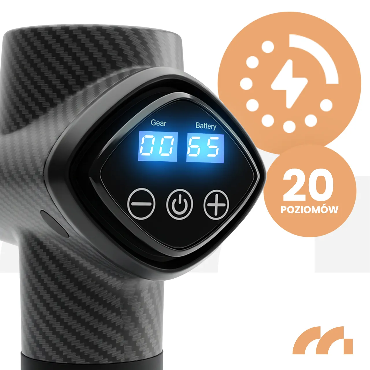 • 20 poziomów prędkości – od delikatnego odprężenia po intensywny masaż powięziowy