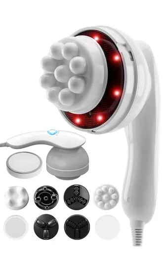 • 10 profesjonalnych końcówek masujących – precyzyjna praca na każdej partii ciała: kark, plecy, pośladki, uda, łydki, stopy