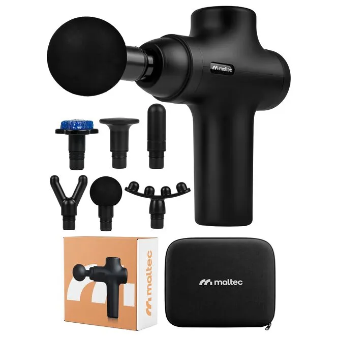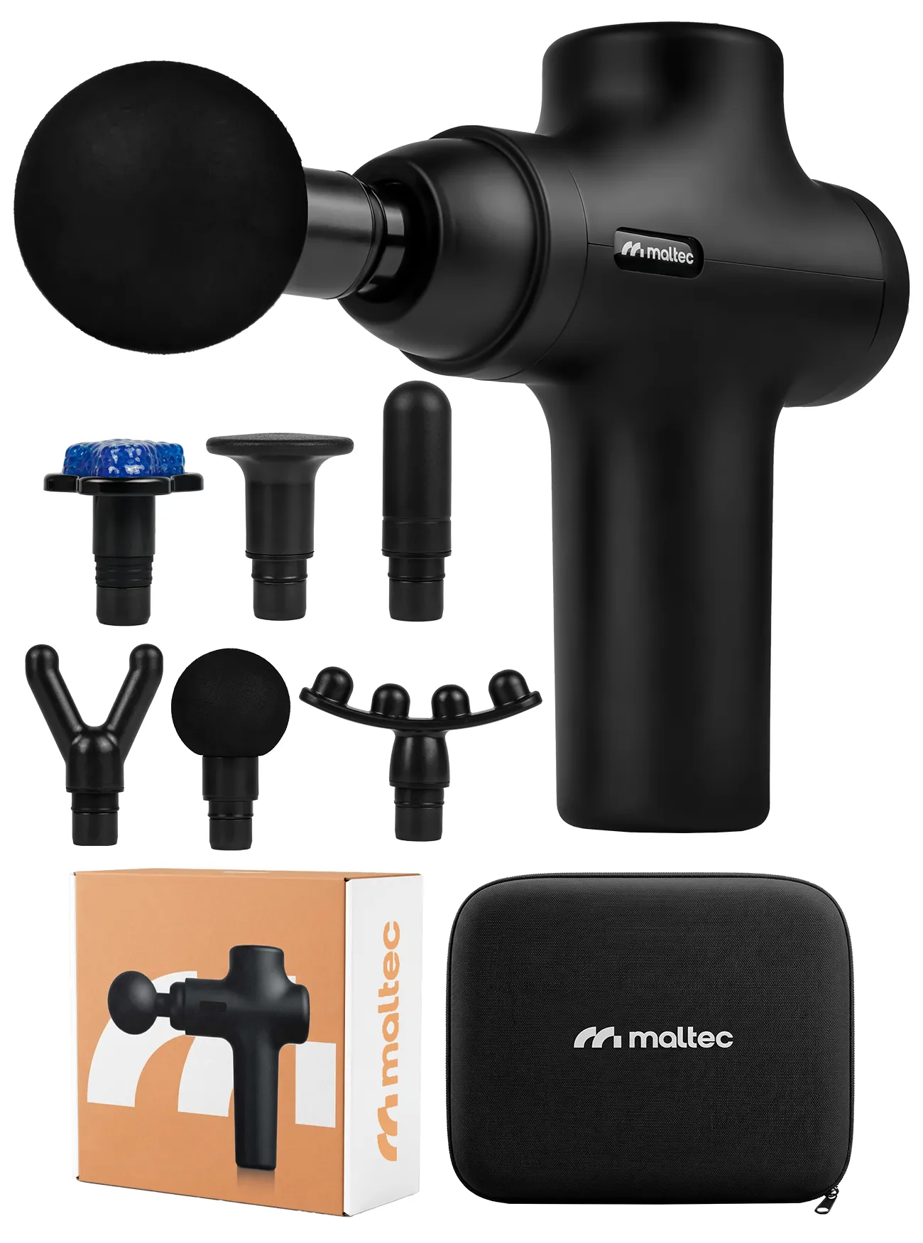 Pistolet oferuje aż 6 profesjonalnych końcówek, które pozwalają dopasować masaż do każdej grupy mięśniowej. Dzięki temu jeden kompaktowy pistolet pokrywa potrzeby całej rodziny – od delikatnego rozluźnienia po intensywną pracę na spiętych partiach.