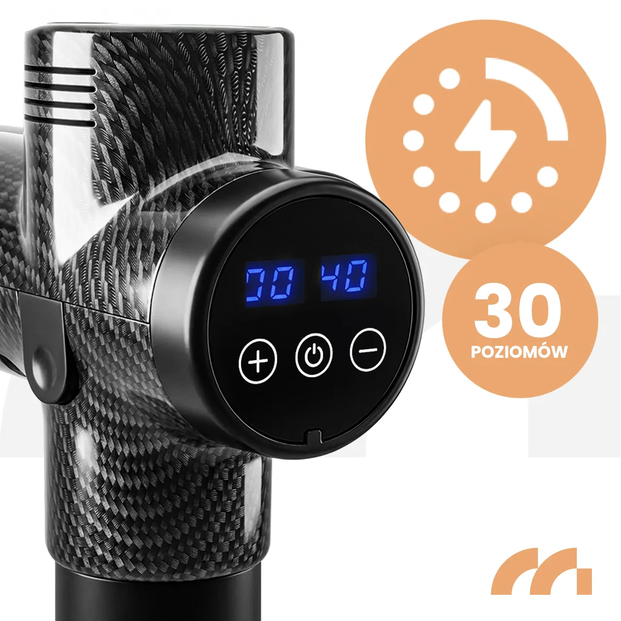 PISTOLET DO MASAŻU GUN MASSAGE MASAŻER CIAŁA ZESTAW 10 KOŃCÓWEK ETUI LCD