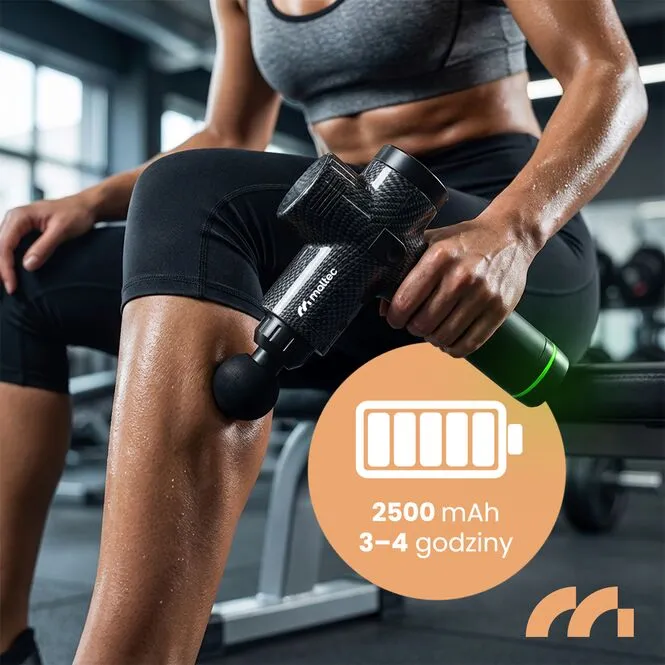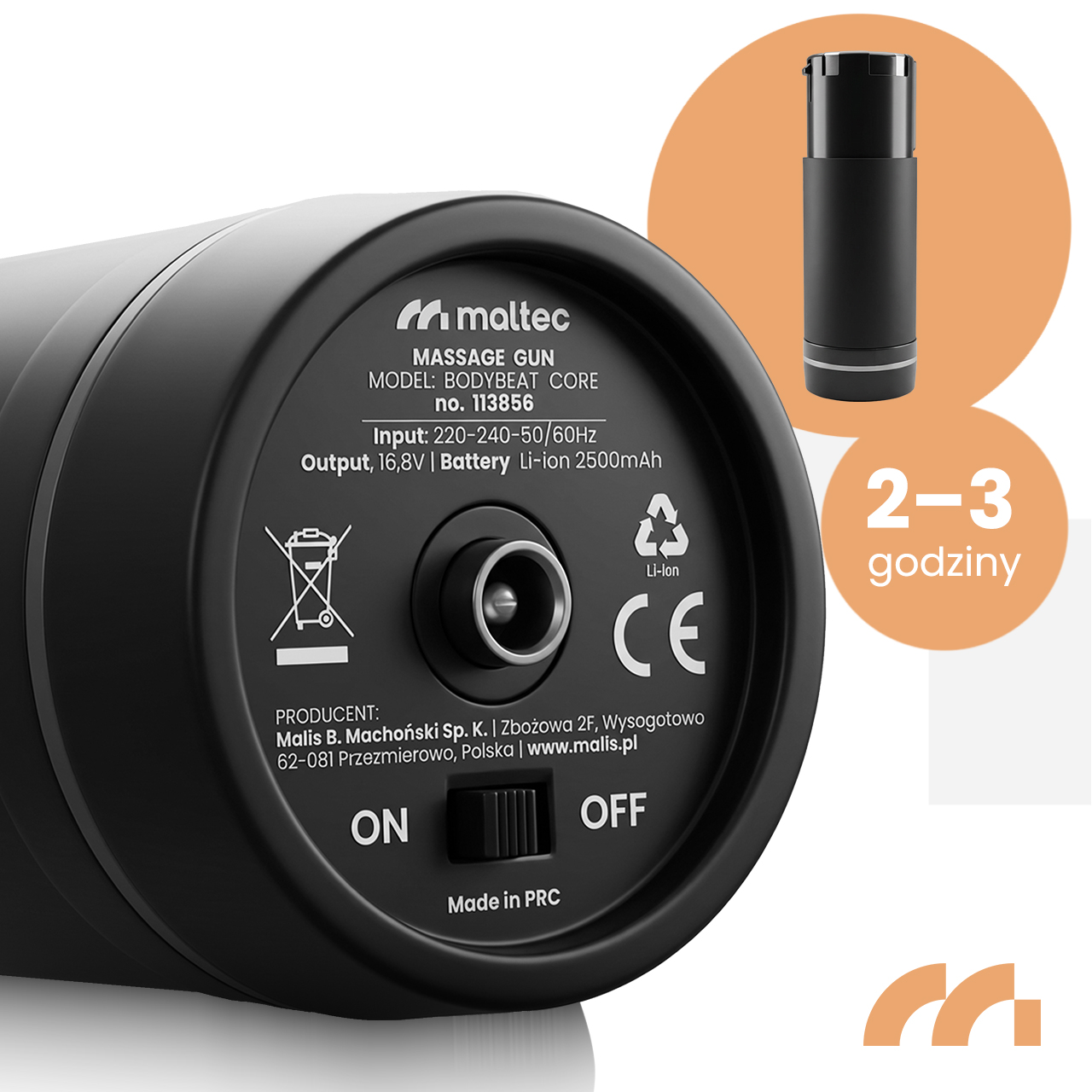BodyBeat Core wyposażono w akumulator 2500 mAh, co zapewnia 3–4 godziny ciągłej pracy — to znacznie więcej niż w standardowych pistoletach tej klasy.