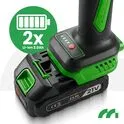 W zestawie znajdują się aż dwa akumulatory litowo-jonowe 21V 2.0Ah, które pozwalają na ciągłą pracę bez oczekiwania na ładowanie.