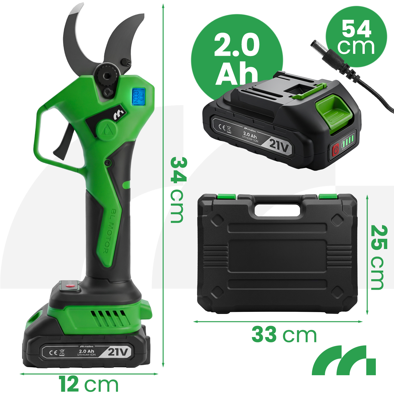 Sekator MalTec MasterCut500W wyposażony jest w nowoczesny silnik bezszczotkowy, który zapewnia wyższą wydajność, mniejsze zużycie energii i dłuższą żywotność urządzenia w porównaniu z tradycyjnymi silnikami szczotkowymi. Dzięki tej technologii sekator pracuje płynnie, z równą mocą i bez spadków wydajności nawet przy intensywnym użytkowaniu.
