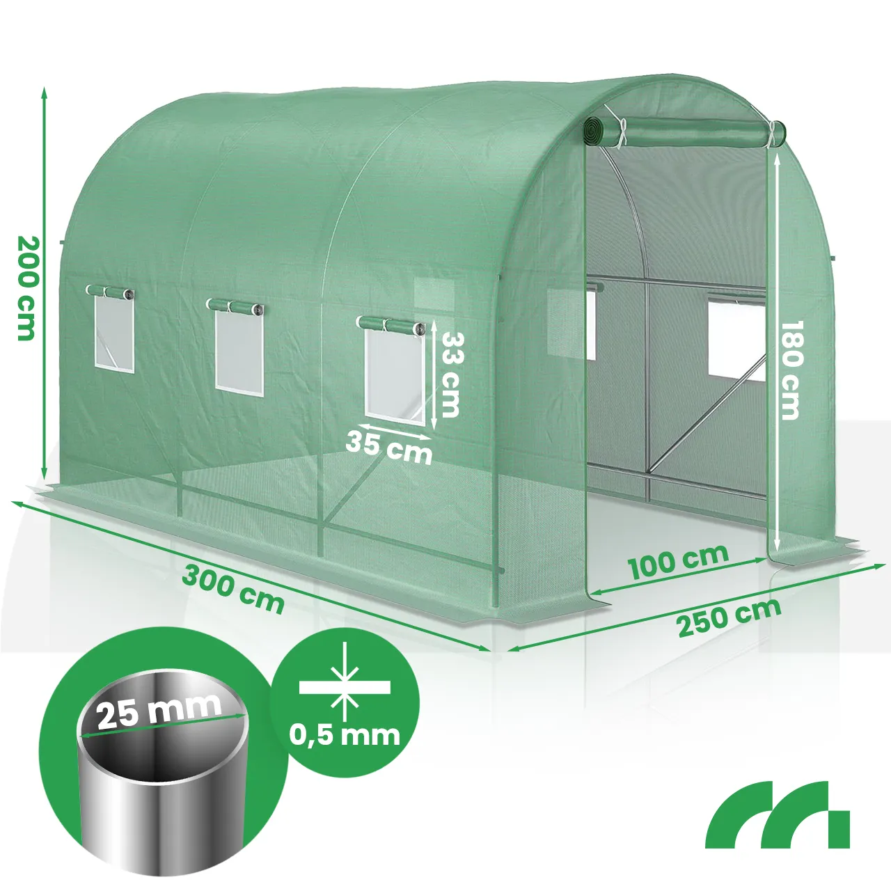 ◾ 3M DŁUGOŚCI ◾ 2,5M SZEROKOŚCI ◾ 2M WYSOKOŚCI ◾ POWIERZCHNIA 7,5M2 ◾ DUŻE DRZWI ◾ 6 OKIEN ◾ MOCNY OCYNKOWANY STELAŻ ◾ 4 LINY ORAZ KOTWY MOCUJĄCE ◾