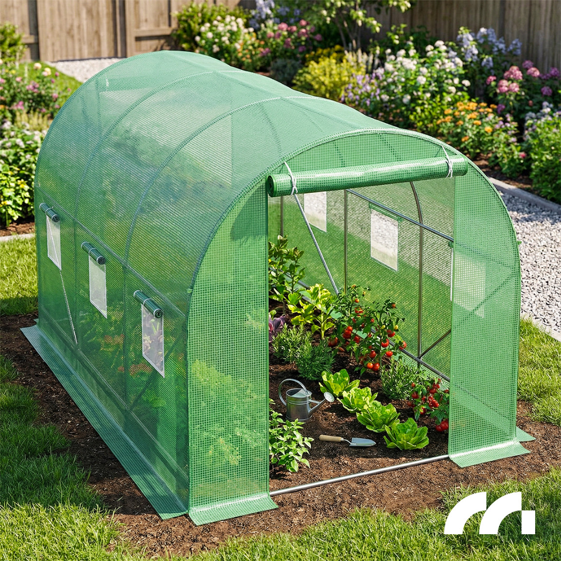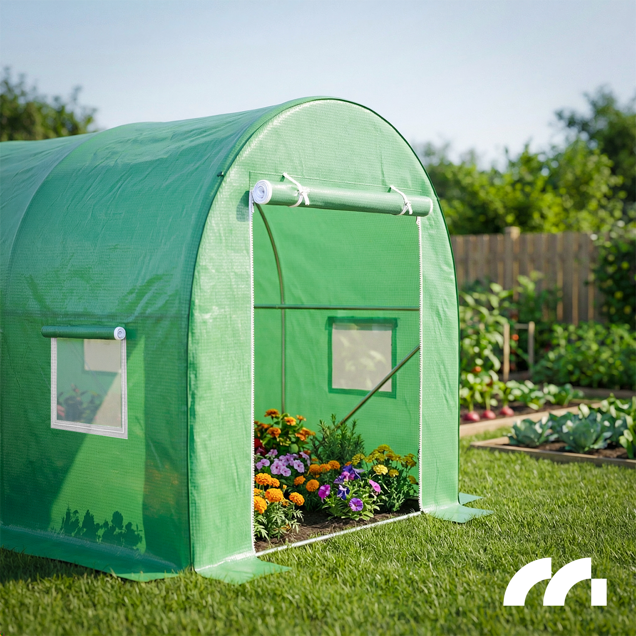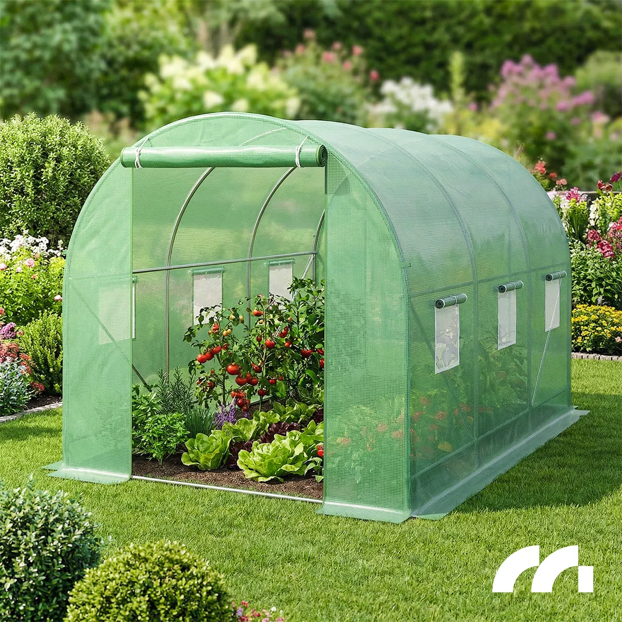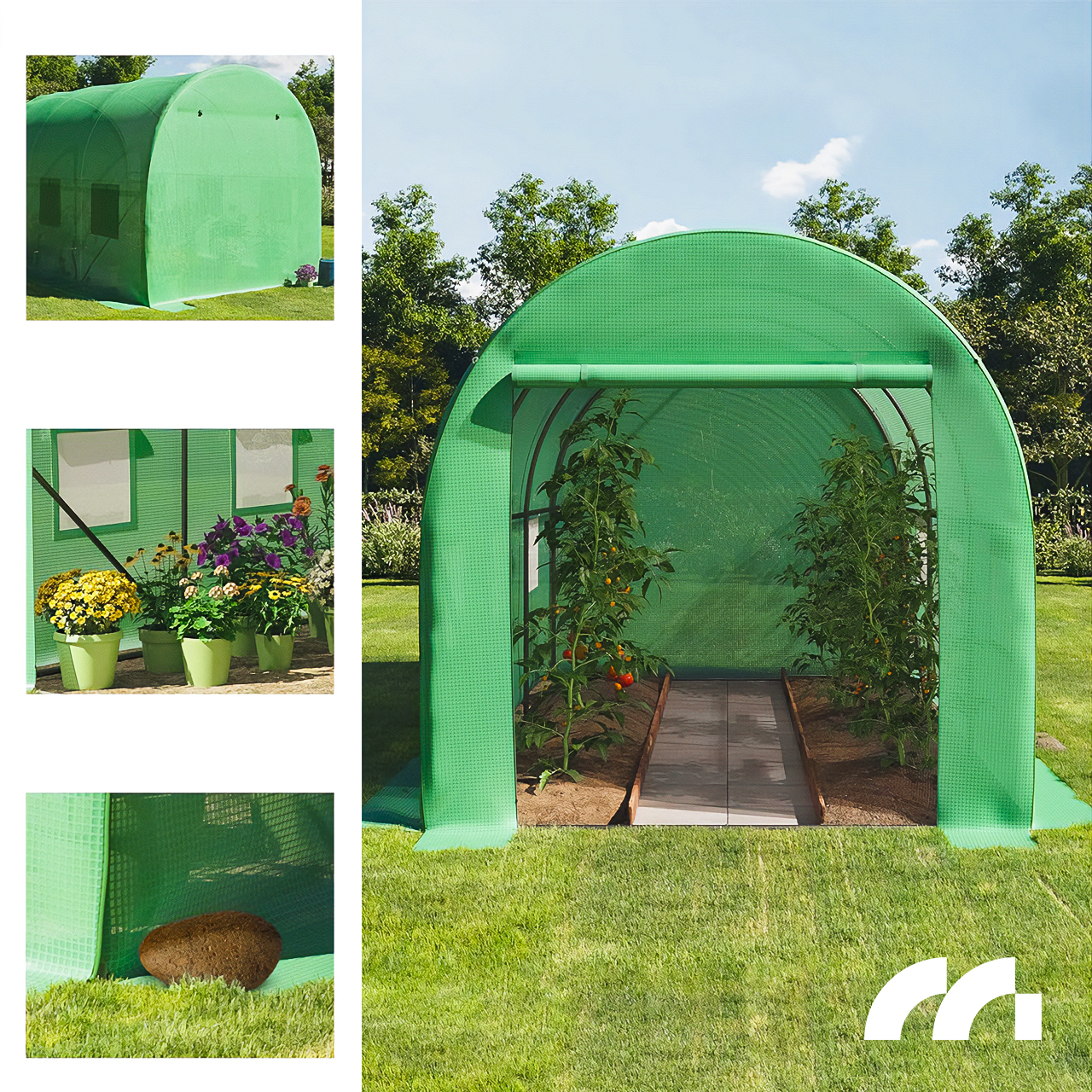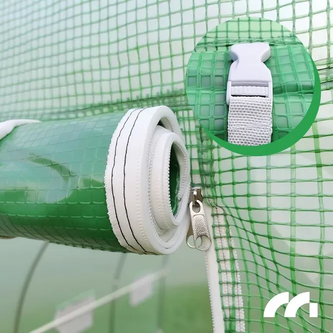 Dzięki temu możesz swobodnie wchodzić i wychodzić ze szklarni. Rozwiązanie można również wykorzystać do przewietrzenia wnętrza. Drzwi zapinane na zamek błyskawiczny.