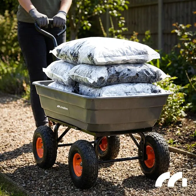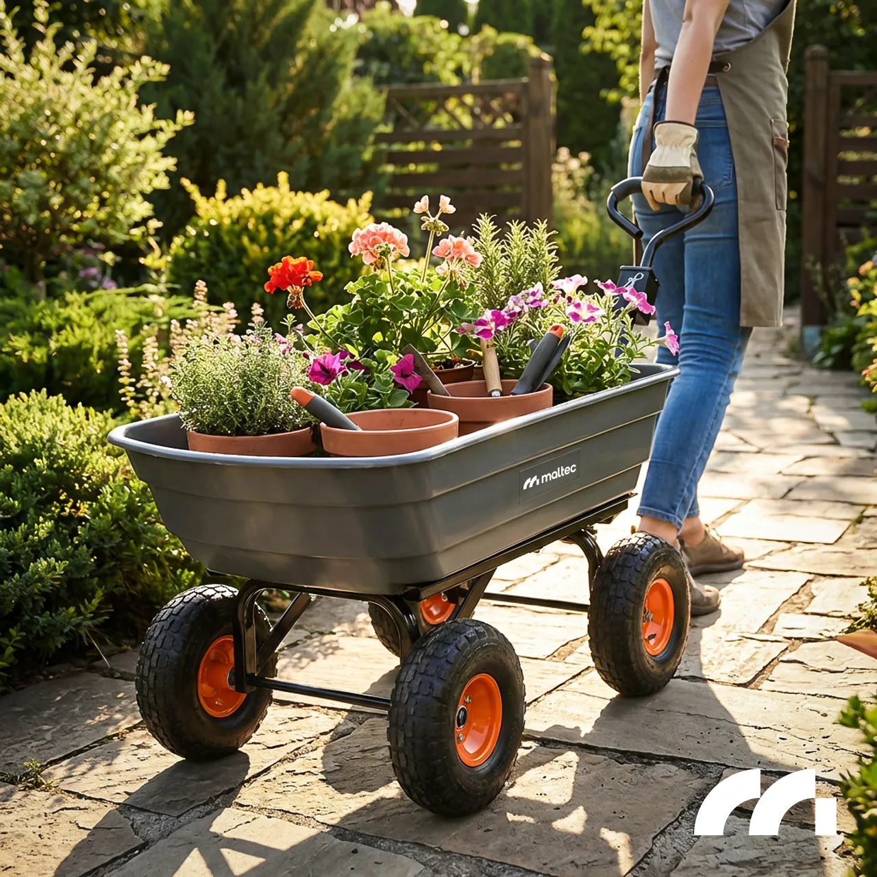 - W ogrodzie - wózek ogrodowy jest idealnym narzędziem do transportowania różnych materiałów, takich jak ziemia, kamienie, gałęzie, drewno, narzędzia ogrodowe, itp.